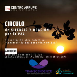 En el marco de la Semana Mundial de la Armonía Interconfesional nos alegra invitaros al circulo de silencio y oración interreligiosa por la paz que tendrá ligar en el Centro Arrupe el dia 4 de febrero de 18.30h a 19.30h